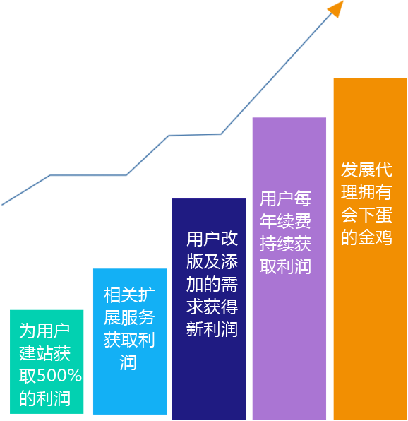 建站业务的用户长期使用长期续费的特性,让每一个用户多可以多年创造收益,每一份投资都有一个长期回报